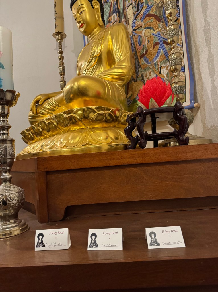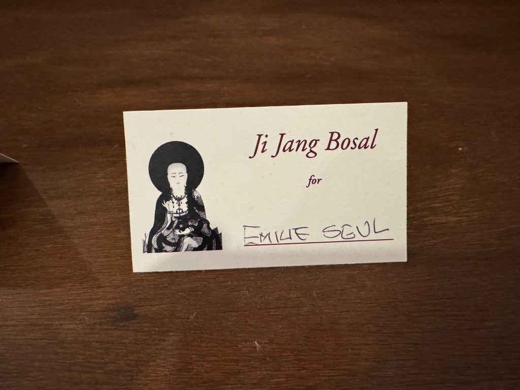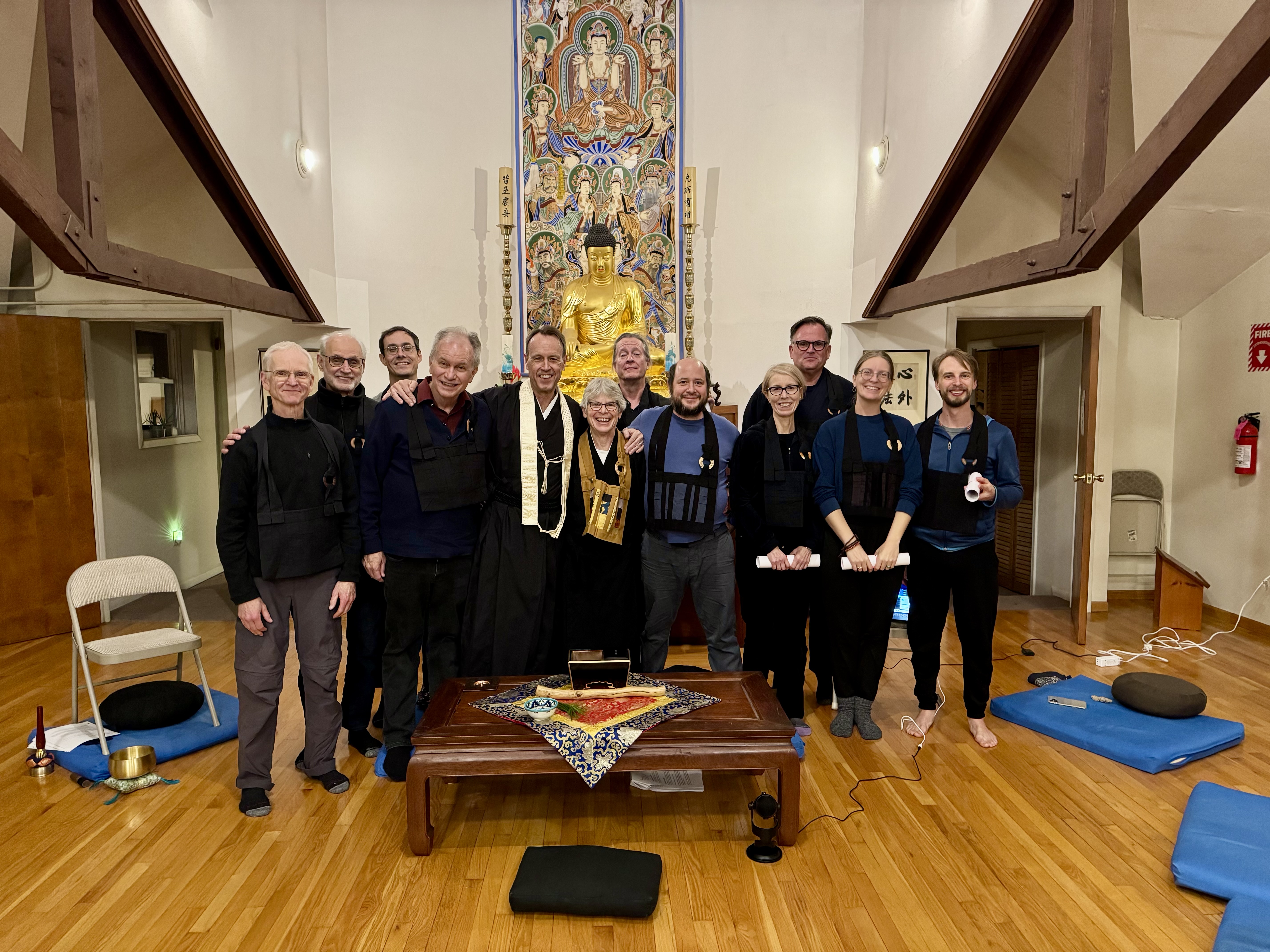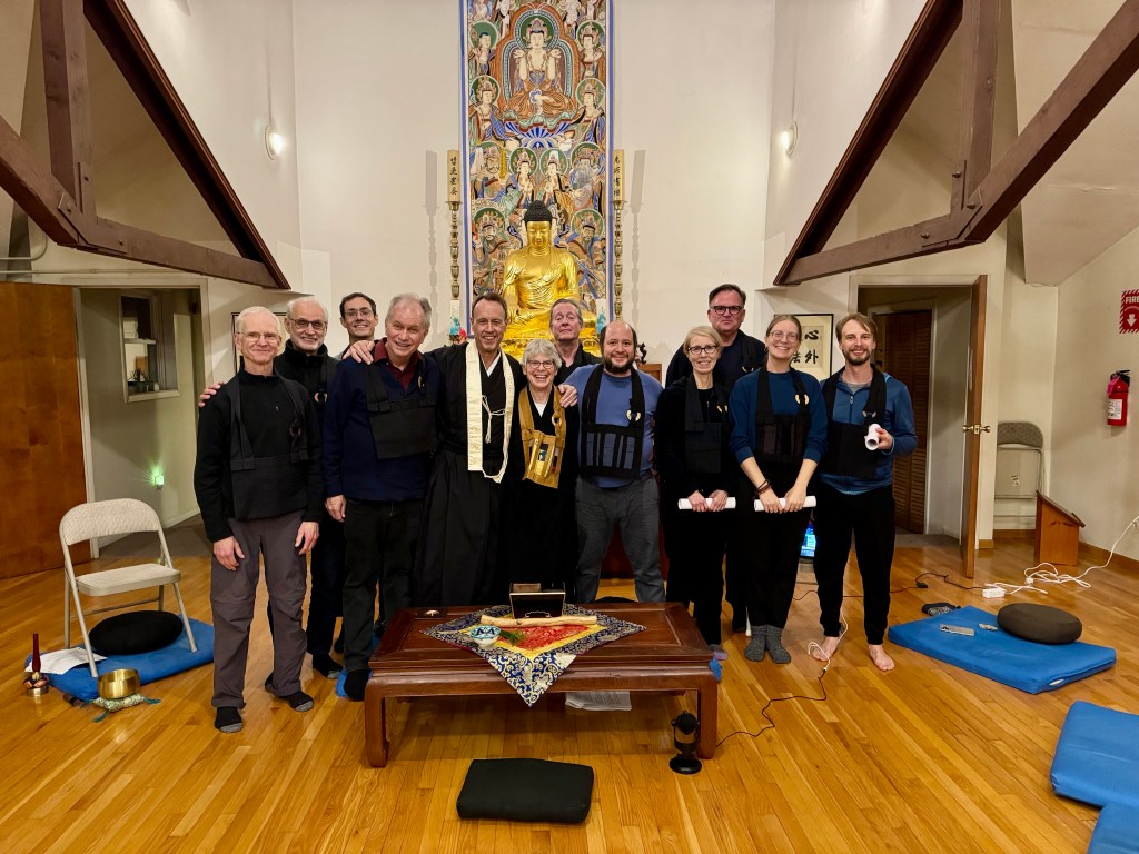 Here is a photo following our Jukai ceremony last November during a sesshin at Providence Zen Center. I’ve included a few other photos from that retreat, including one of the altar memorial card for my mom, who had passed away just a few weeks earlier.