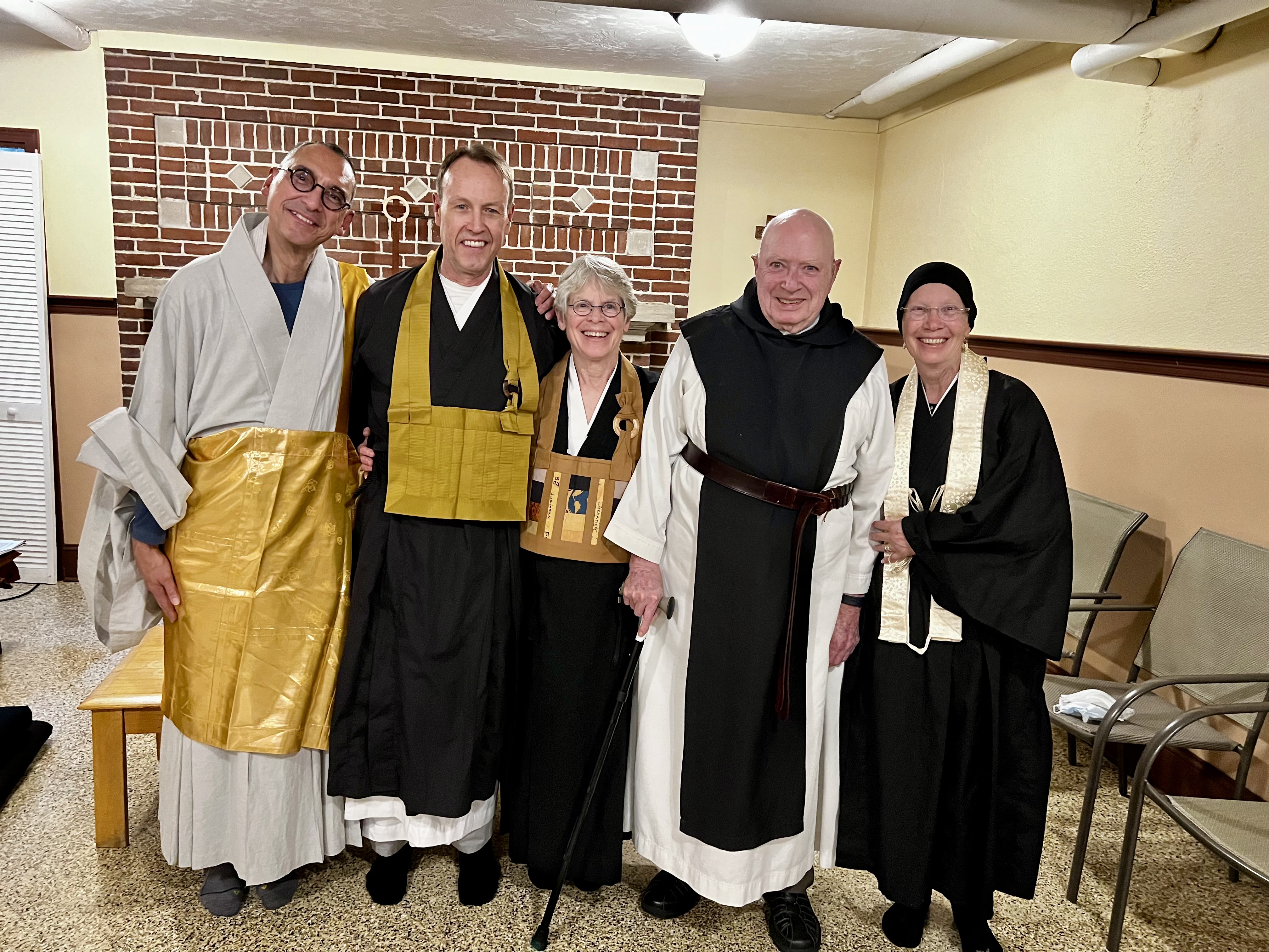 Roshi Kevin Jiun Hunt and Roshi Cindy Kin Ryu Taberner and Zen Master Tan Gong (a guiding teacher of the Providence Zen Center in the Kwan Um school) were present for the Denbo ceremony, as were about 15 members of our sangha. Two pictures from this happy occasion are attached.